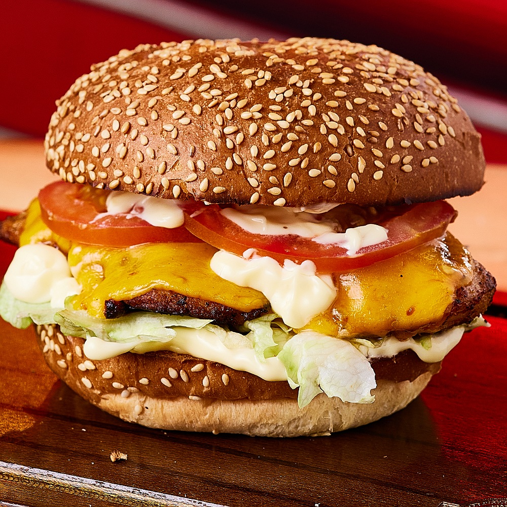 150 gram gefrituurde premium kipfiletburger, Jordy's Bakery brioche, huisgemaakte mayonaise, sla, Ierse cheddar en tomaat