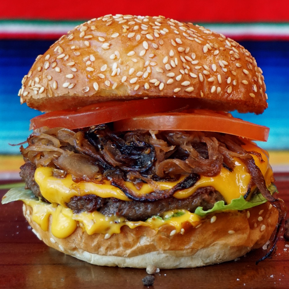 150 gram beefburger, Jordy's Bakery brioche, huisgemaakte burgersaus, sla, Ierse cheddar, gekarameliseerde uien en tomaat